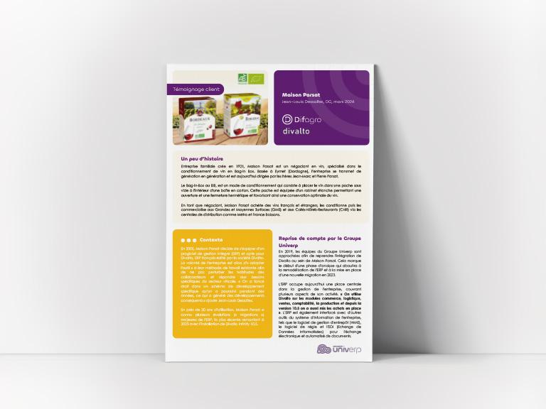 Cliente du Groupe Univerp depuis 2020, Maison Parsat utilise l’ERP (Enterprise Resource Planning) Divalto pour la gestion de son activité.